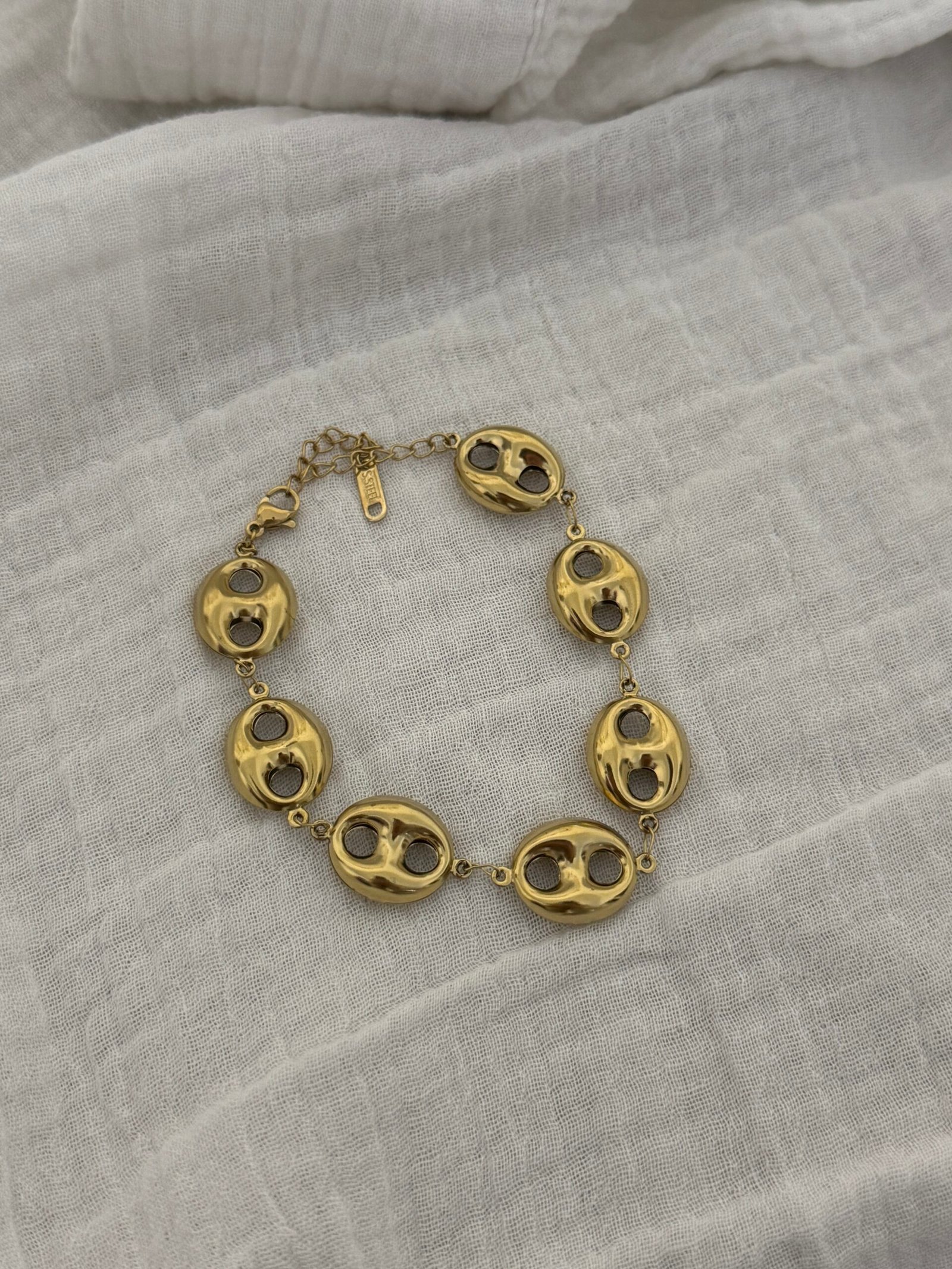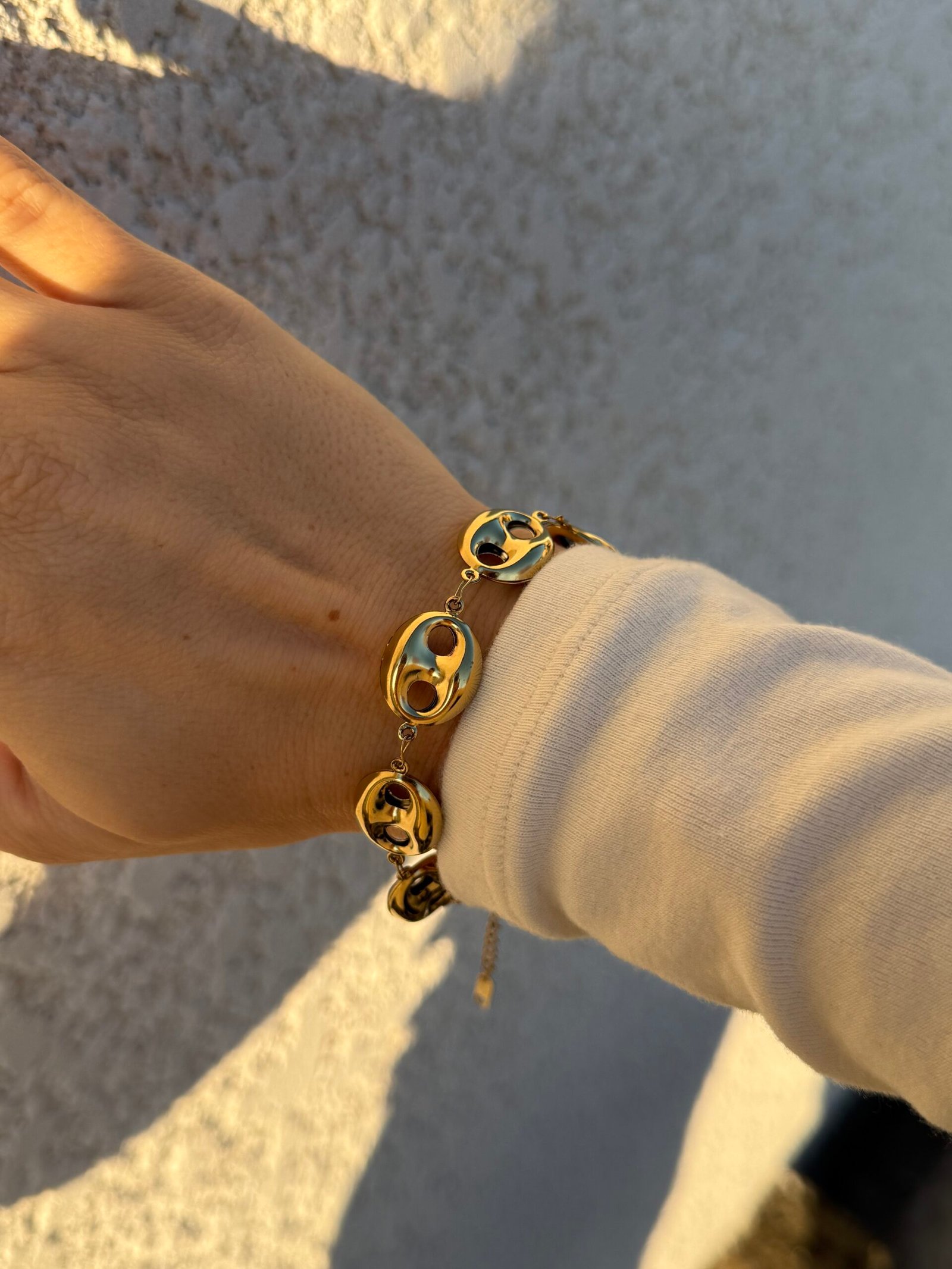 Bracelet ajustable doré à gros maillons hyper léger en acier inoxydable.