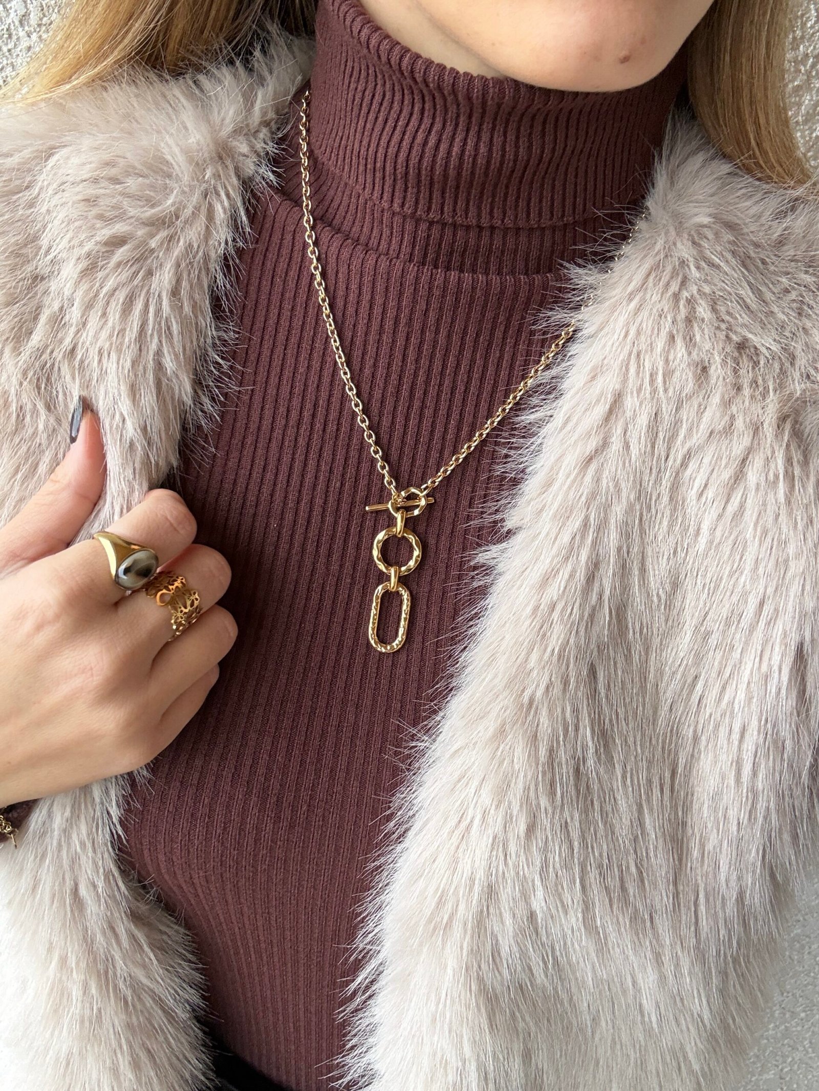 Collier long grosse chaîne et maillon au bout en acier inoxydable. Matière hypoallergénique qui ne s’oxyde pas au contact de l’eau.