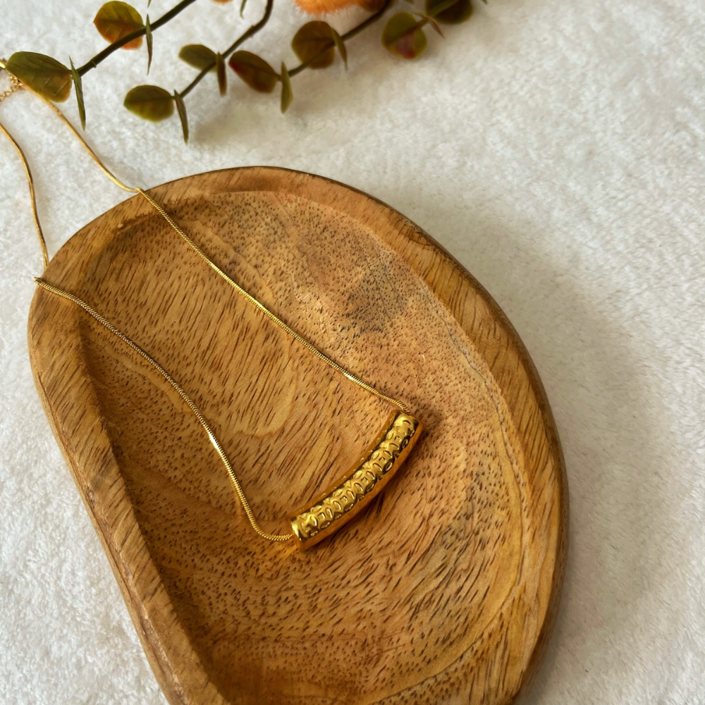 - Collier doré chaîne serpent avec barre gravure tâches