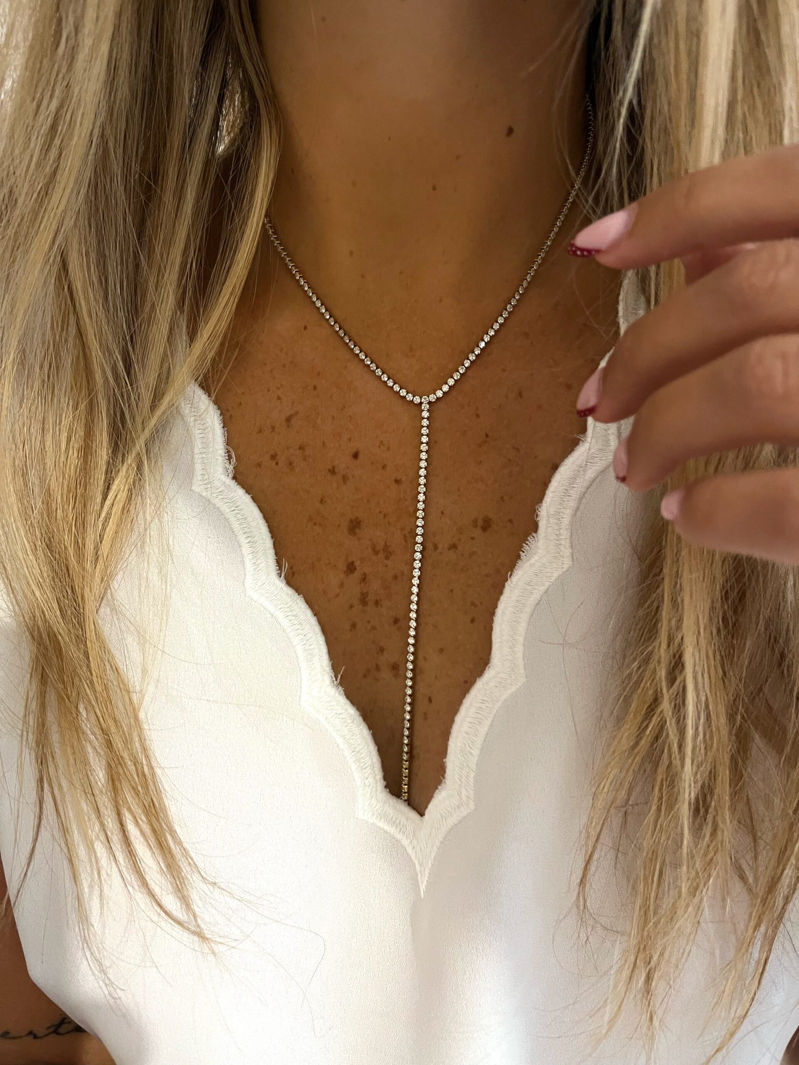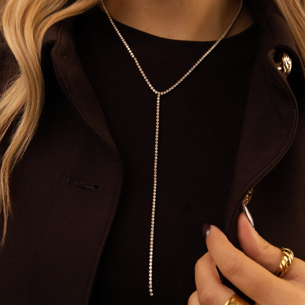 Collier doré en Y avec strass en acier inoxydable. Parfait pour pomper vos tenues et habiller vos décolletés.