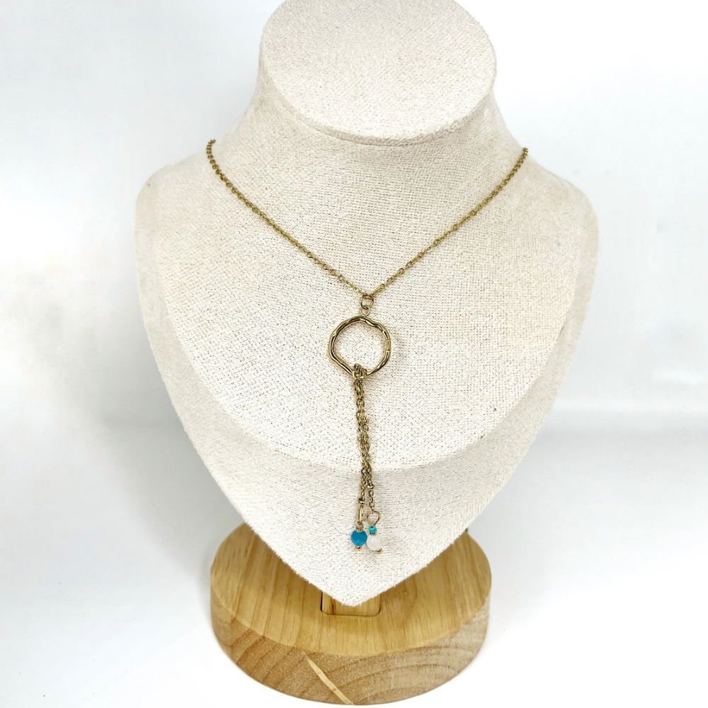 Collier doré éventail de 6 diamants en acier inoxydable.