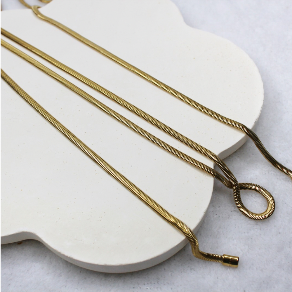 Collier sautoir doré « écharpe » en maille omega en acier inoxydable.